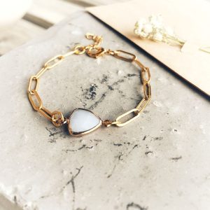 צמיד קלאסי בגווני זהב מט ואבן חן לבנה