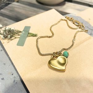 שרשרת לב בציפוי זהב מט מיוחד עם חרוז קריסטל טורקיז