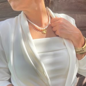 שרשרת פנינים טבעיות קלאסית עם תליון