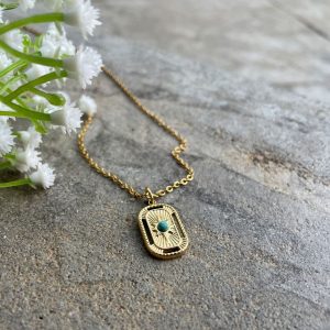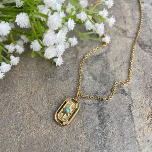 תליון מאורך קלאסי ויפיפה בשילוב הגוונים המנצח זהב וטורקיז