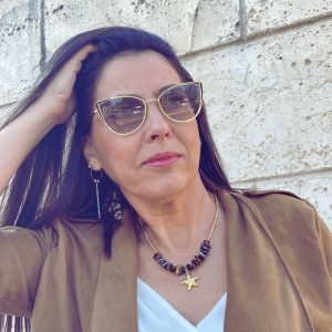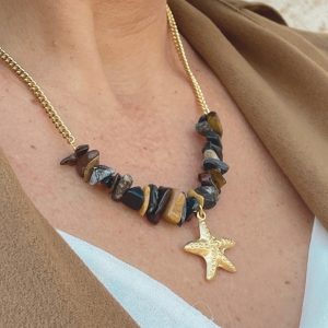 שרשרת אבנים בגוונים חומים עם תליון כוכב ים גדול בציפוי זהב איכותי